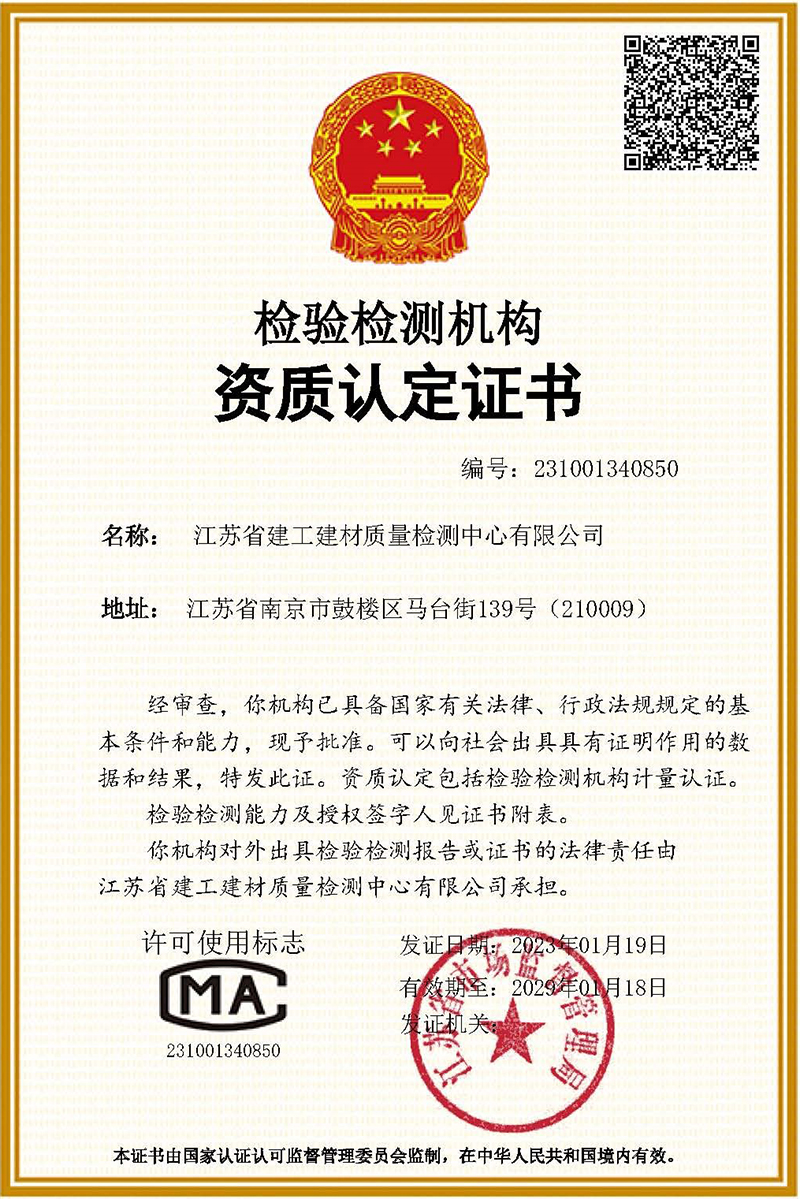 建設(shè)工程質(zhì)量檢測機構(gòu)資質(zhì)證書
