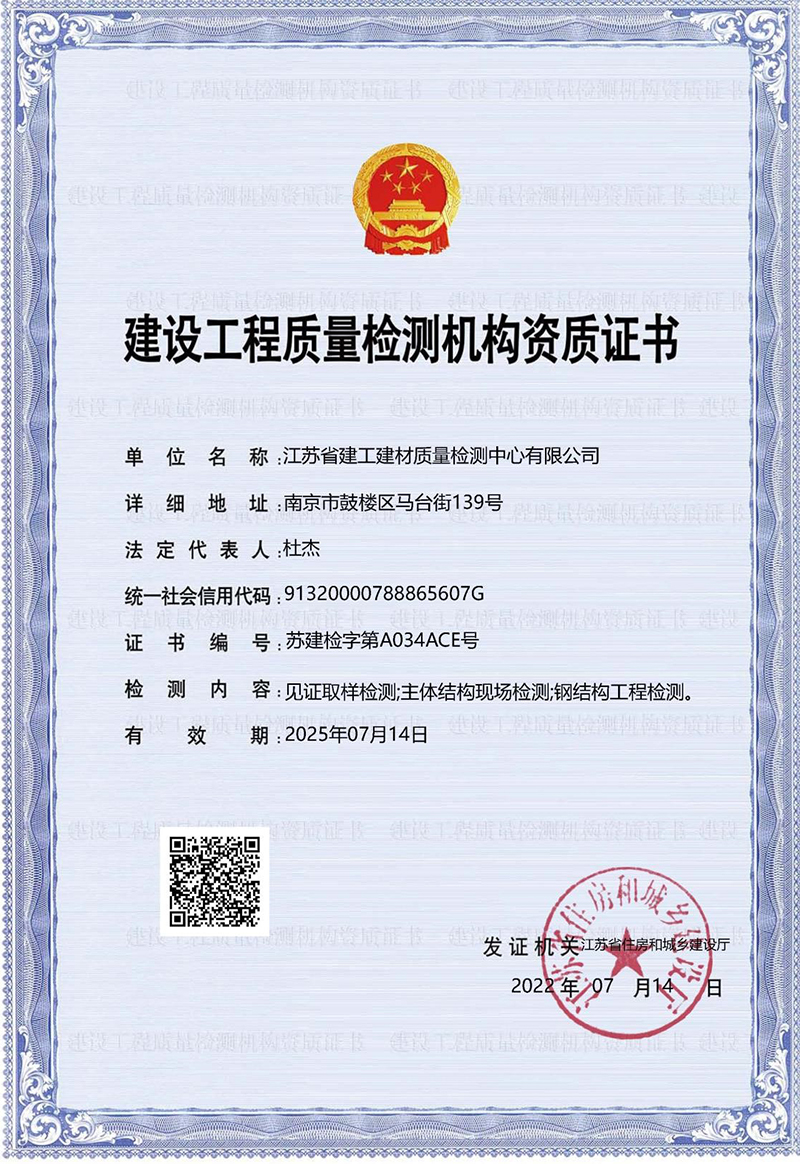 建設(shè)工程質(zhì)量檢測機構(gòu)資質(zhì)證書