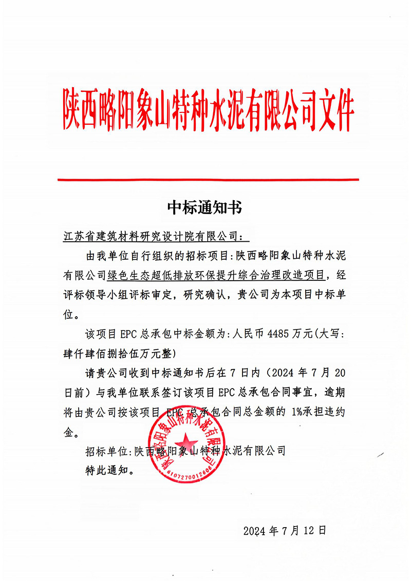 近日,我院中標(biāo)陜西略陽象山特種水泥有限公司綠色生態(tài)超低排放環(huán)保提升綜合治理改造EPC 工程總承包項目,中標(biāo)金額4485萬元。