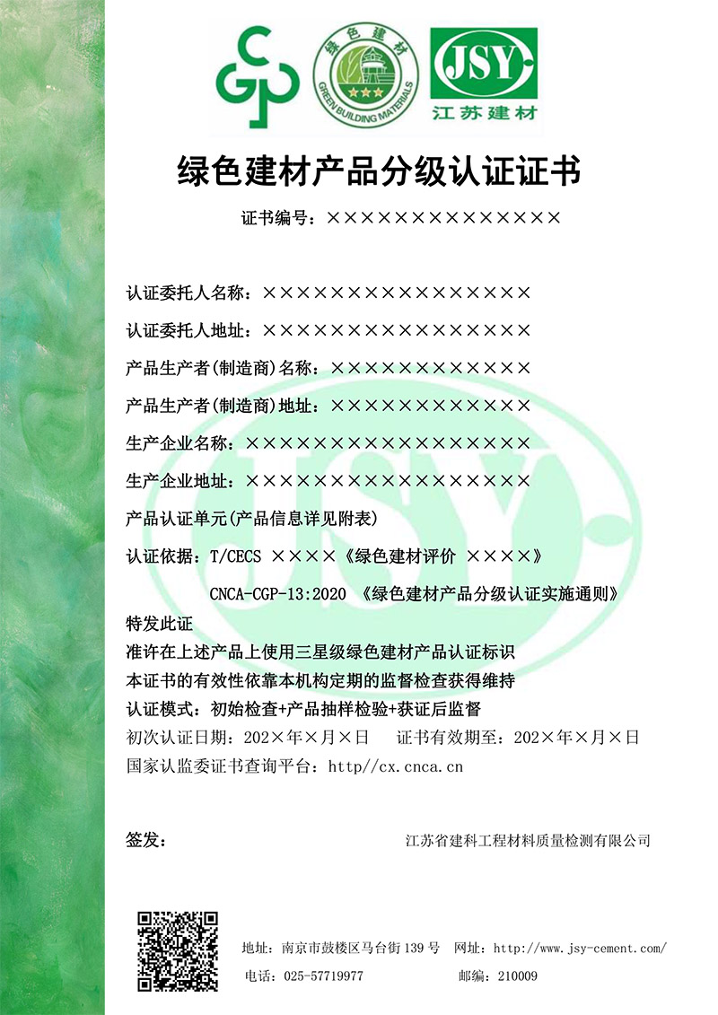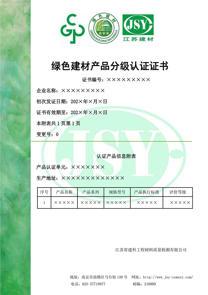 綠色產(chǎn)品認(rèn)證證書樣本